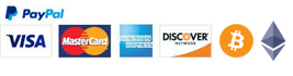 We accept payments via VISA/MASTER credit and debit cards, American Express and PayPal. Please visit www.paypal.com for more information. We also accept Cryptocurrency such as bitcoin & etherium.